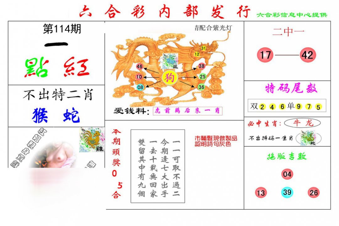 | 048期:接二连三狗猖狂,本期要钱看红绿。 开:羊24 |