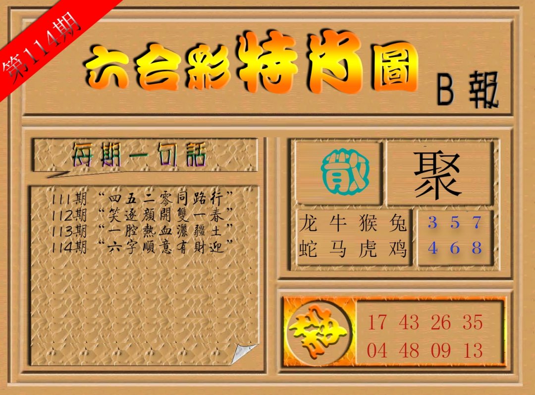 | 035期:戎通昌如天所复,三岁熟读三字经。 开:马48 |