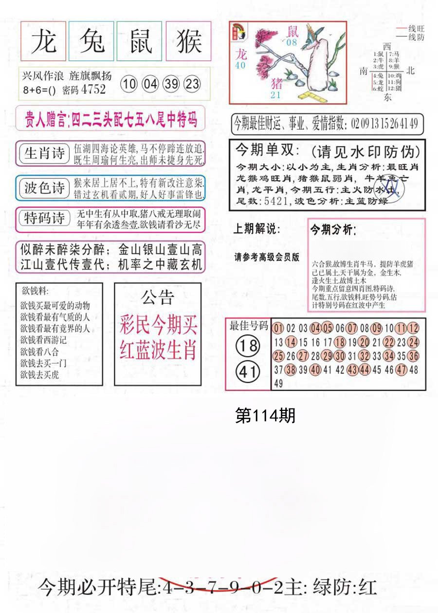 | 114期 新新彩双波【绿波红波】开:0000 准 |